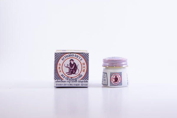 White Monkey Holding Peach Balm consists of Camphor, I-Menthol, Methyl Salicylate, Eucalyptus Oil, Cinnamon Oil, and Peppermint Oil. The product can reduce swelling, relieve pain, relieve itching, refresh, treat cold, abdominal pain, sprains, wounds, insect bites, and dizziness.